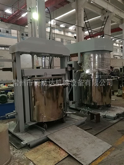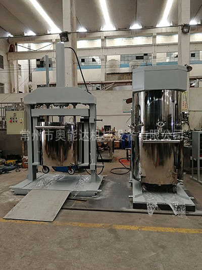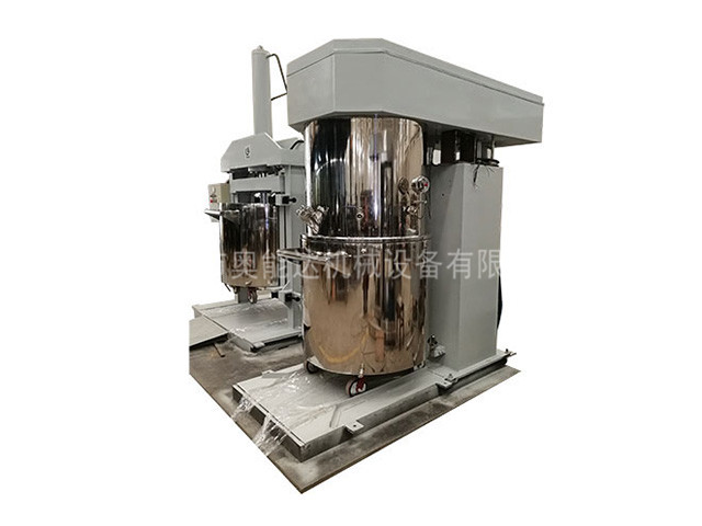 行星分散攪拌機有高速、低速、活動刮板作攪拌、剪切、刮壁、溶解用。低速運轉(zhuǎn)的攪拌錨使物料在密閉容器內(nèi)上下翻動、剪切和混合,高速運轉(zhuǎn)的齒形分散盤與混合的物料產(chǎn)生強烈的碰擊和剪切,隨著攪拌錨的旋轉(zhuǎn),行星架上的活動刮刀隨著旋轉(zhuǎn),把釜體上的物料完全刮掉,使聚集物完全、徹底地達到混合、分散、溶解的要求。在其高低速的不同作用下,使物料能夠達到均勻的混合和分散。